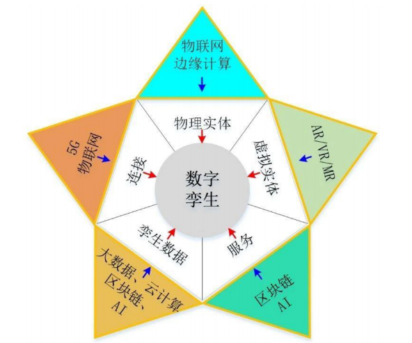 5G通信技术具有高速率、大容量、低时延、高可靠的特点,能够契合数字孪生的数据传输要求,满足虚拟模型与物理实体的海量数据低延迟传输、大量设备的互通互联,从而更好的推进数字孪生的应用落地。