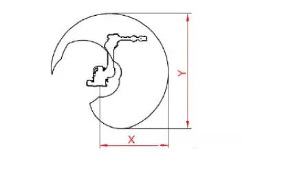 机器人的最大垂直高度的量测是从机器人能到达的最低点(常在机器人底座以下)到手腕可以达到的的最大高度的距离(Y)。最大水平作动距离是从机器人底座中心到手腕可以水平达到的最远点的中心的距离(X)。