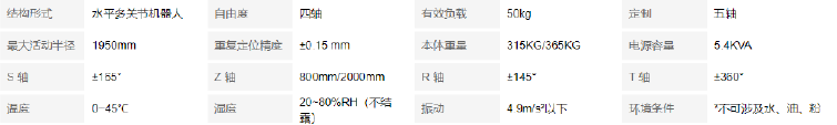 四轴、可选装五轴 型号有: SCH50-1950-800 SCH50-1950-2000 本体标准色:黄色,基座标准色:黑色