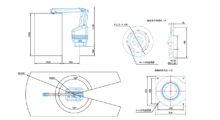 轴数4 | 精度0.1mm | 工作域2450mm |
