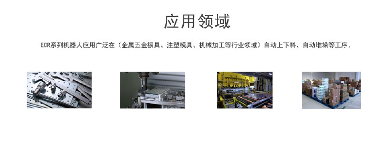 ECR系列四六轴机器人,有效负载5~50kg,它能够适应各种不同的应用场景,可进行客户定制,操作简单易懂,结构牢固,能够满足客户产品多样化、高效率、产品生产的要求。 极 简:只保留了为用户创造价值所必须的设计。 节 能:极简的设计,减轻了整机重量,使得能耗显著降低。 稳 定:所有核心部件均选用国产一线大厂,稳定性非贴牌部件可比。 易 维 护:极简的设计、即使偶有故障,亦特别容易排查与检修。
