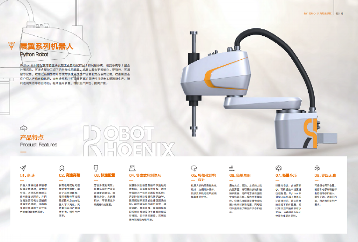 Python系列搭配翼菲自主研发的工业自动化产品(如伺服系统、视觉系统等)整合外围系统,可适应复杂工况下的各类应用场景。机器人具有更智能化、更弹性、可调整等优势,在难以预测的市场需求与快速更迭的产线变化方面更有优势,在由制造业客户导入产线自动化后,在制造系统中可呈现更高的灵活性并逐步实现智能生产,借此达成高效率的自动化,有效提升质量、增加生产弹性、提高产能。