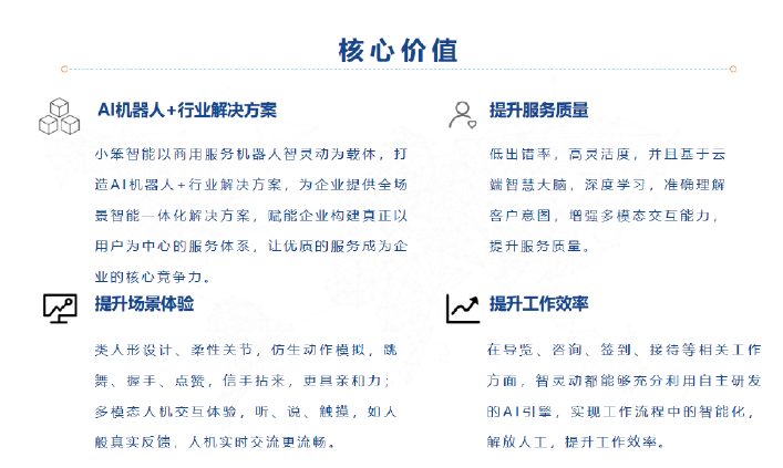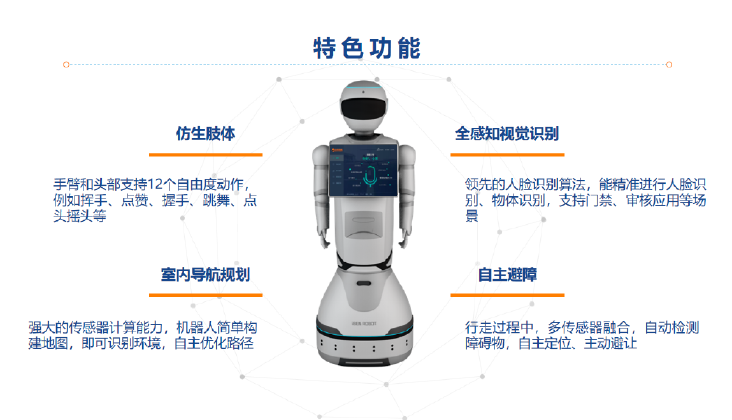 类人化设计提升商业场景科技感的无限可能,10个自由度灵活双臂形神兼备,丰富的场景接口轻松实现万物智联、企业高度制定拓展使用广度和深度