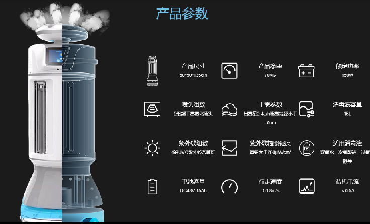 通过自主研发通信系统使智能协调实现Al分布调度确保多机器人协作、安全更高效完成消毒任务。