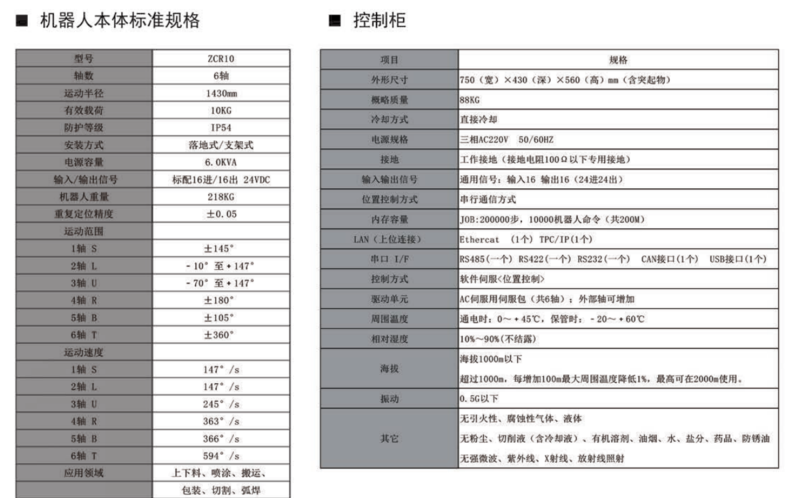 DCR10特性:最大负载10Kg,最大工作半径为1430mm。