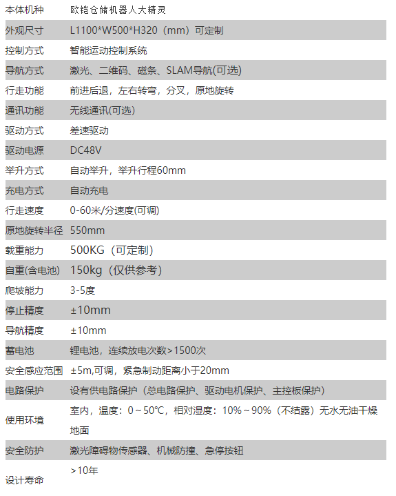 欧铠仓储机器人大精灵参数