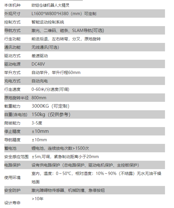 欧铠仓储机器人螃蟹3000参数: