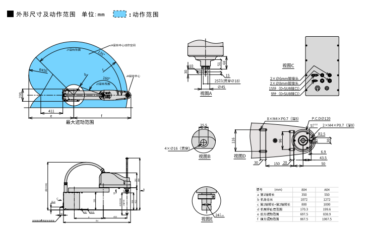 高刚性臂体,R轴最大惯性力矩达1kg- m3,高速、大负载运行时残余振动低,性能更加稳定,品质可靠。