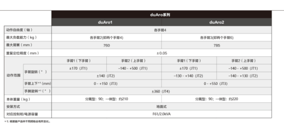 duAro2机器人的规格