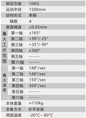 LAIDER1000-B410 搬运机器人主要应用领域:物料搬运、零部件传输、堆垛、去毛刺、切割