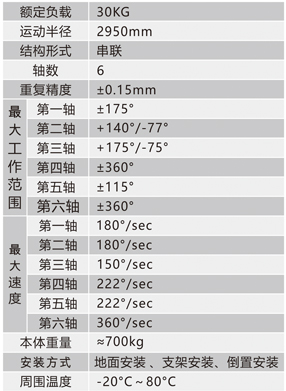 LAIDER2950-D630通用型机器人主要应用领域:物料搬运、零部件传输、堆垛、去毛刺、切割