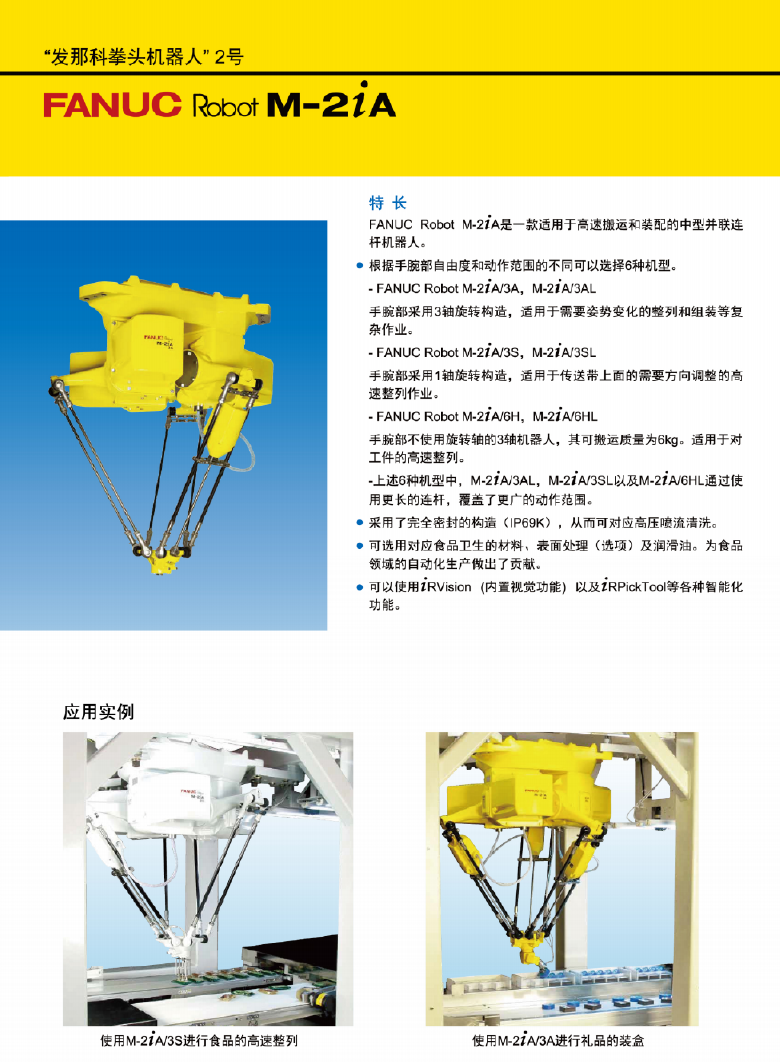 FANUCRobotM-21A是一款适用于高速搬运和装配的中型并联连杆机器人。
