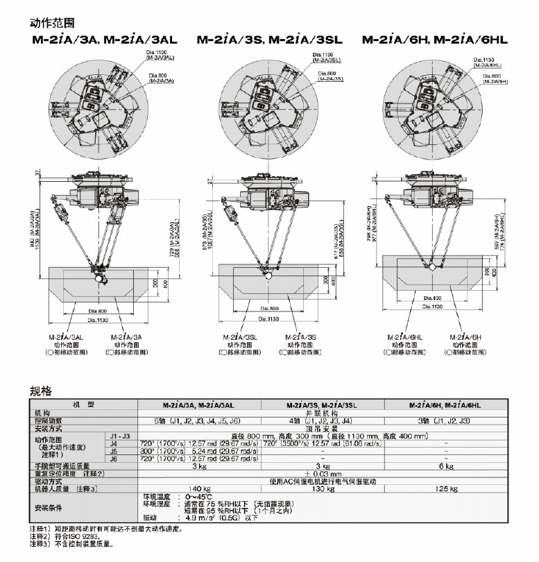 -上述6种机型中,M-2iA/3AL,M-21A/3SL以及M-21A/6HL通过使用更长的连杆,覆盖了更广的动作范围。