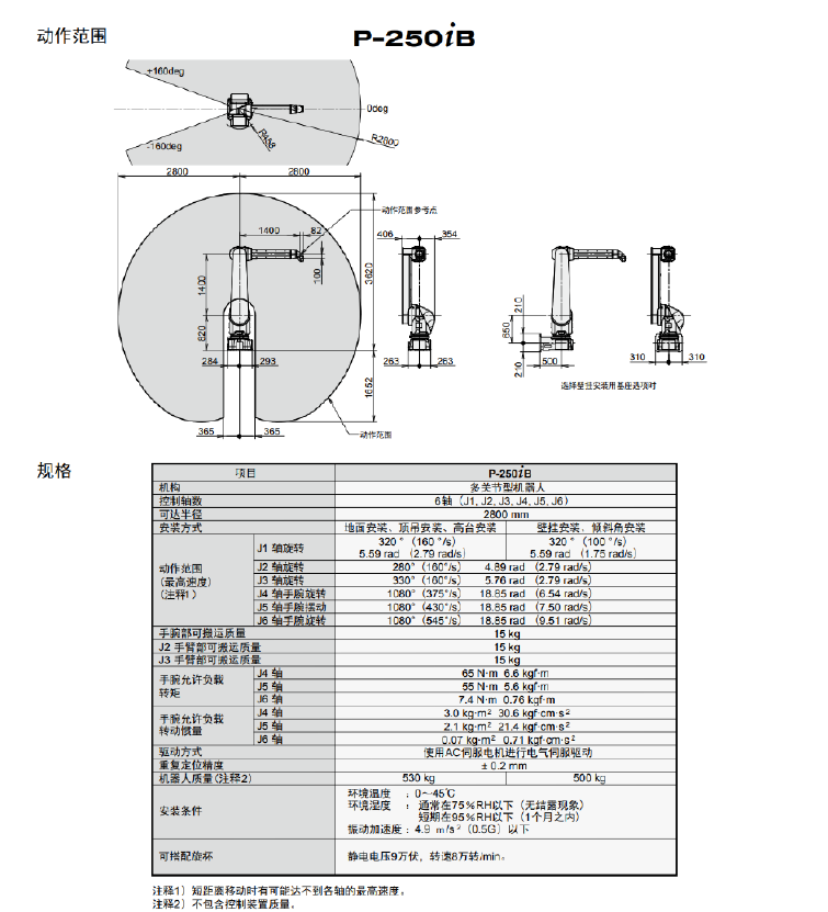 FANUC Robot P-2501B是可搬运质量为15kg的大型喷涂机器人。