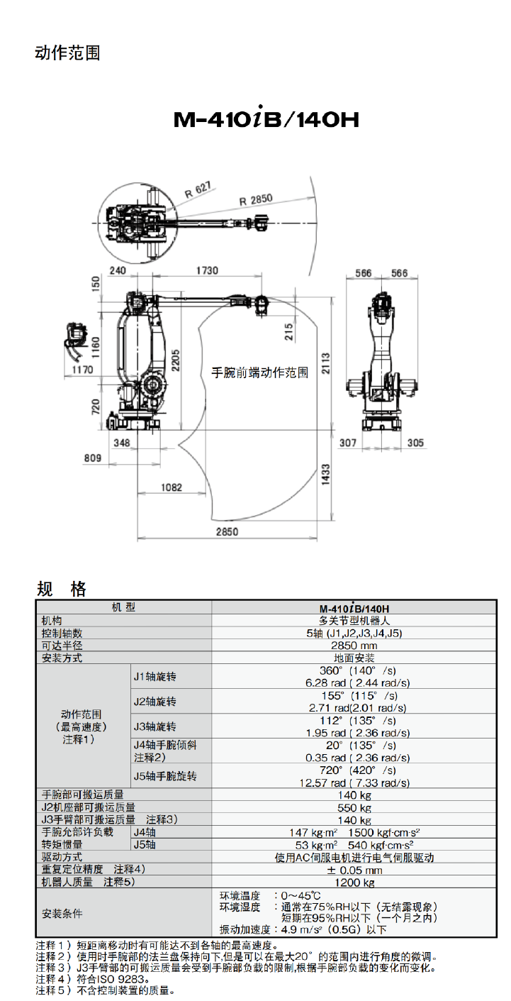 。可以根据搬运工件的特征选择最合适的机型。 FANUC Robot M-4101B/140H可搬运质量140kg/高速搬运型 FANUC RobotM-4101B/160可搬运质量160kg/高速搬运型 FANUC Robot M-4101B/300可搬运质量300kg/重负载型 FANUC Robot M-4101B/450可搬运质量450kg/重负载型 FANUC Robot M-4101B/700可搬运质量700kg/超重负载型