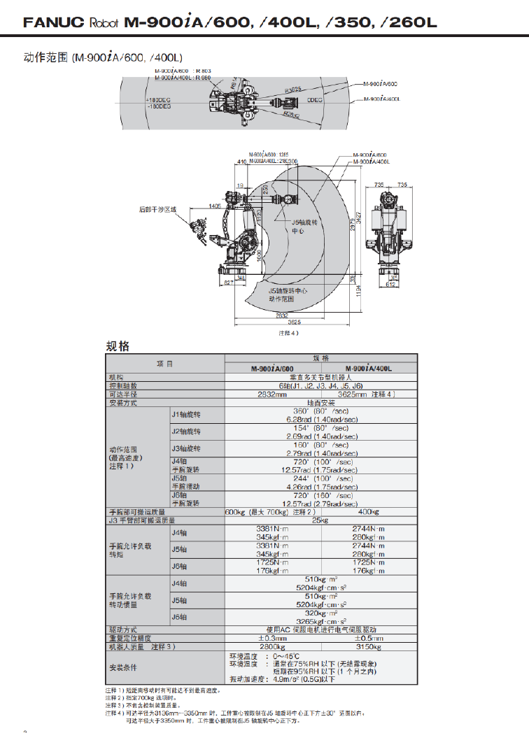 FANUC Robot M-9001B是可搬运质量为280kg~700kg的重型智能机器人。