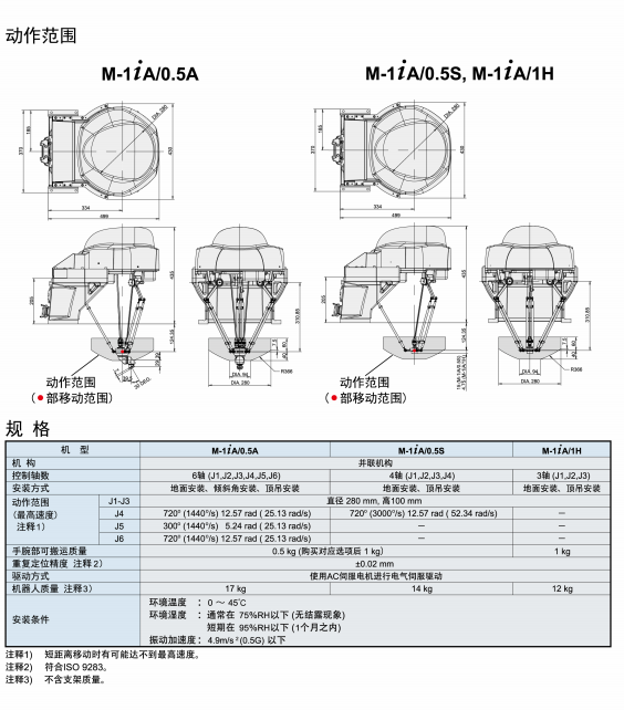 机器人前端不使用旋转轴,可搬运质量为1kg的机型,适用于高速的搬运作业。 -长臂型