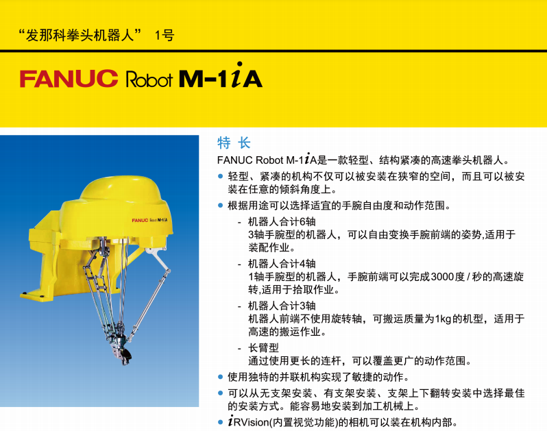FANUC RobotM-11A是一款轻型结构紧凑的高速拳头机器人。