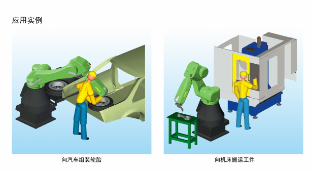 无安全栅栏,人与机器人可共享某个区域进行作业。人与机器人可相互协调地进行重零件的搬运、零件的装配等各种作业。安全功能