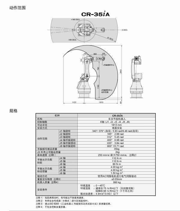 FANUCRobotCR-351A是无需安全栅栏的可搬运质量为35kg的协同作业机器人。