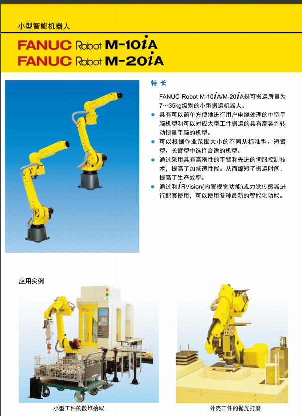 FANUC RobotM-101A/M-201A是可搬运质量为7~35kg级别的小型搬运机器人。