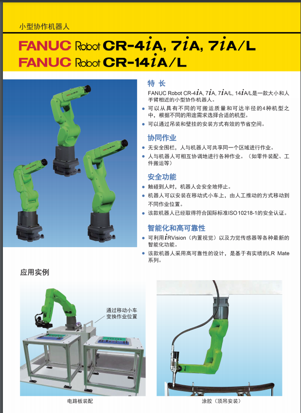 FANUC Robot CR-41A,71A,71A/L141A/L是一款大小和人手臂相近的小型协作机器人。