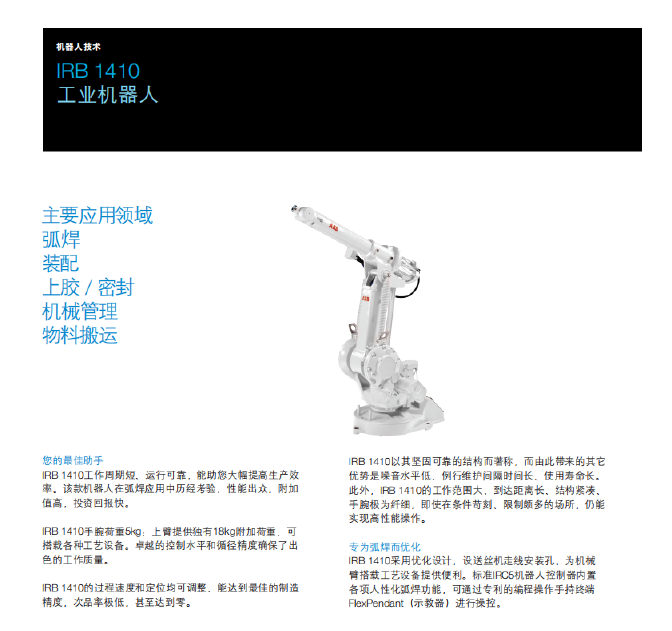 ABB工业机器人IRB 1410-5/1.45 范围1.45米 荷载5KG弧焊机械手