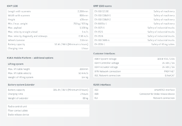 KMP1500是一种更理想地介入生产流程的自主控制式平台。此外,该车辆还特别适用于点阵式焊装。KMP1500可以独立自主地运输产品,完成所有工序。