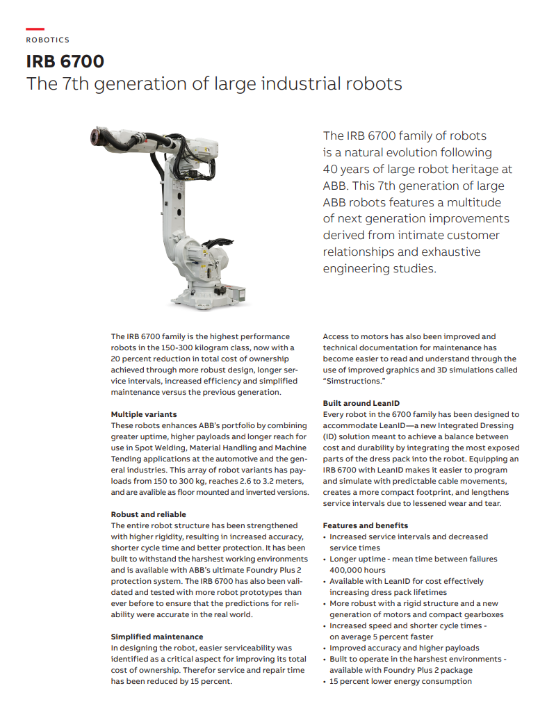 主要应用:装配、切割/去毛刺、研磨/抛光、上下料、物料搬运、喷雾、点焊