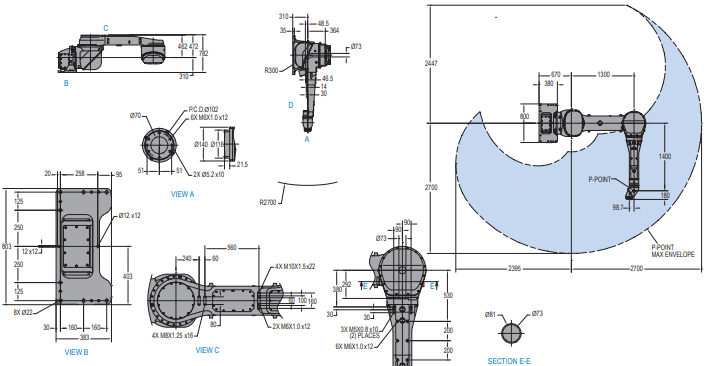 轴数6 | 工作域2700mm | 负载15kg |