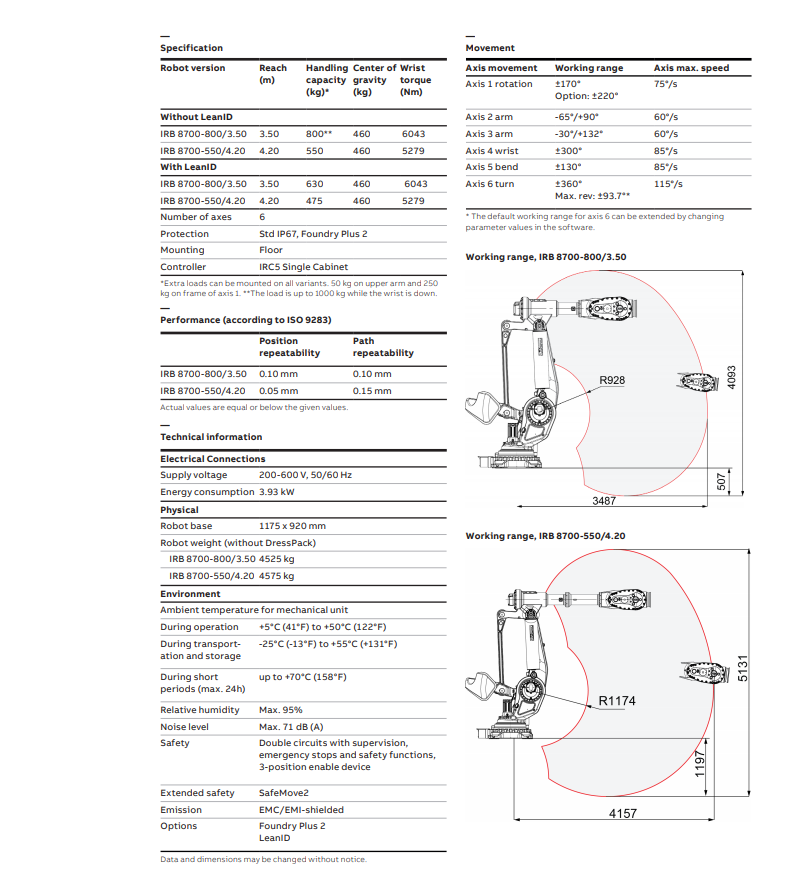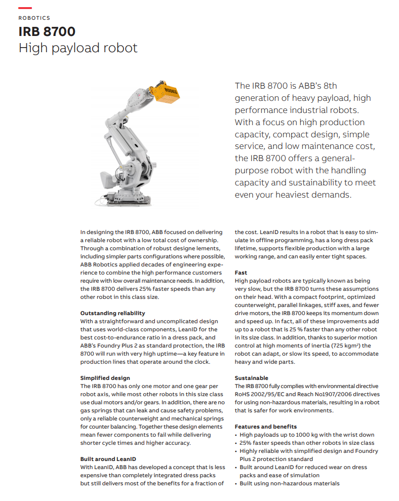 ABB工业机器人IRB 8700-550/4.20范围4.2米荷载550KG 物料搬运 机加工 点焊