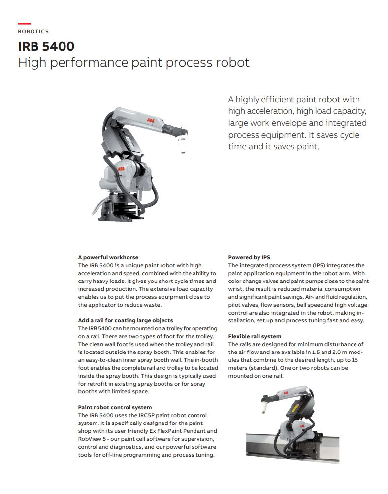 IRB 5400高性能喷涂工艺机器人