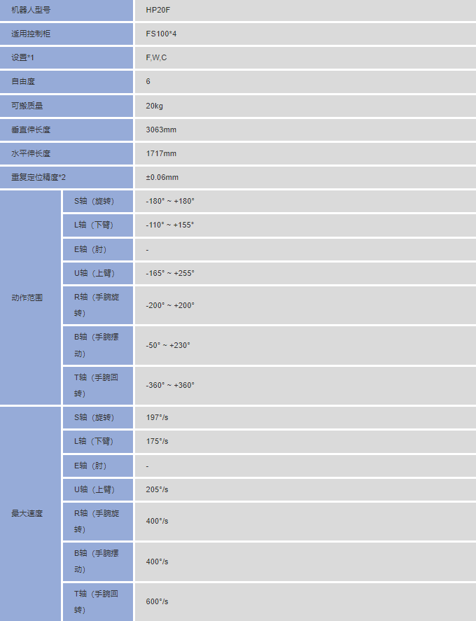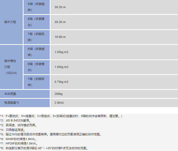 安川HP20F 六轴 负载20Kg 工作域1717mm 搬运机器人产品特点: