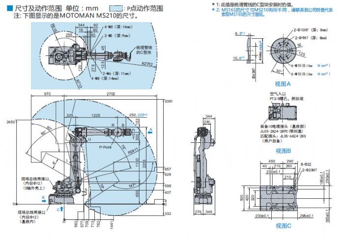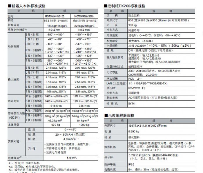 安川MS165D 六轴 负载165Kg 工作域2651mm 焊接机器人产品特点: