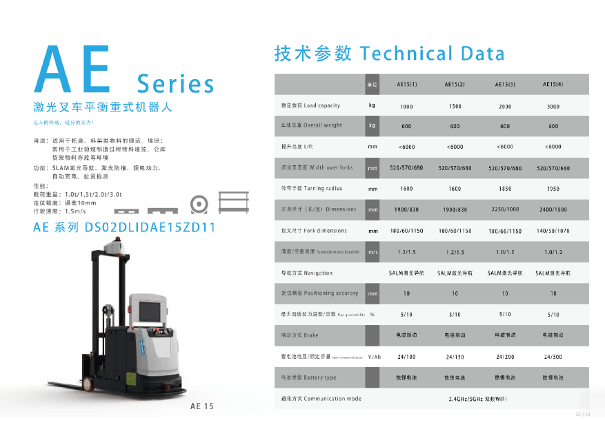 移载形式叉车式 | 驱动形式差速驱动 | 引导形式激光导航 |