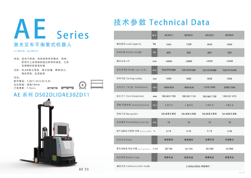 达昇AE30 SALM激光导航 负载3000Kg 电磁制动 激光叉车平衡重式机器人