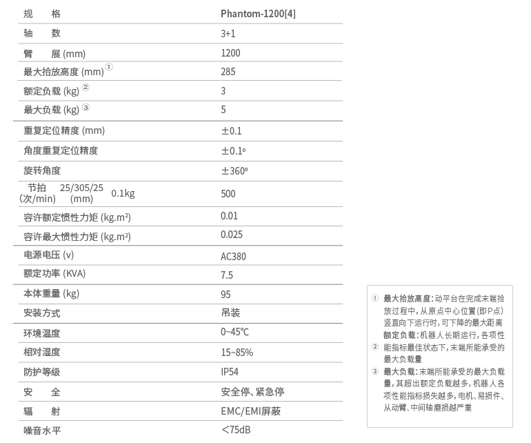 Phantom-1200 并联三加一轴概述:负载(kg):3kg