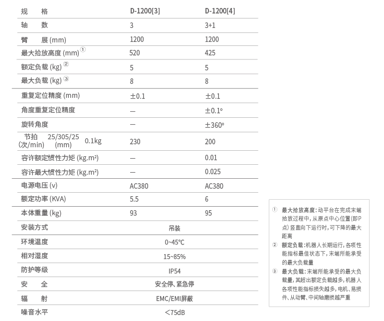 D-1200 并联三加一轴概述:负载(kg):8kg