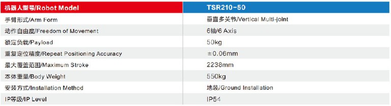 TSR210-50工业机器人规格参数:
