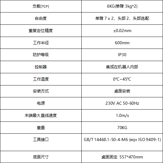 负载6kg | 安装方式桌面 | |