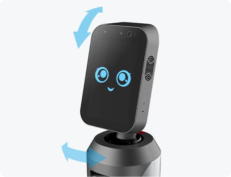 充电时可以正常进行咨询问答等交互。,集合了摄像头模组、麦克风、扬声器、Sim卡槽。整个头部由270°自由旋转的云台支撑。