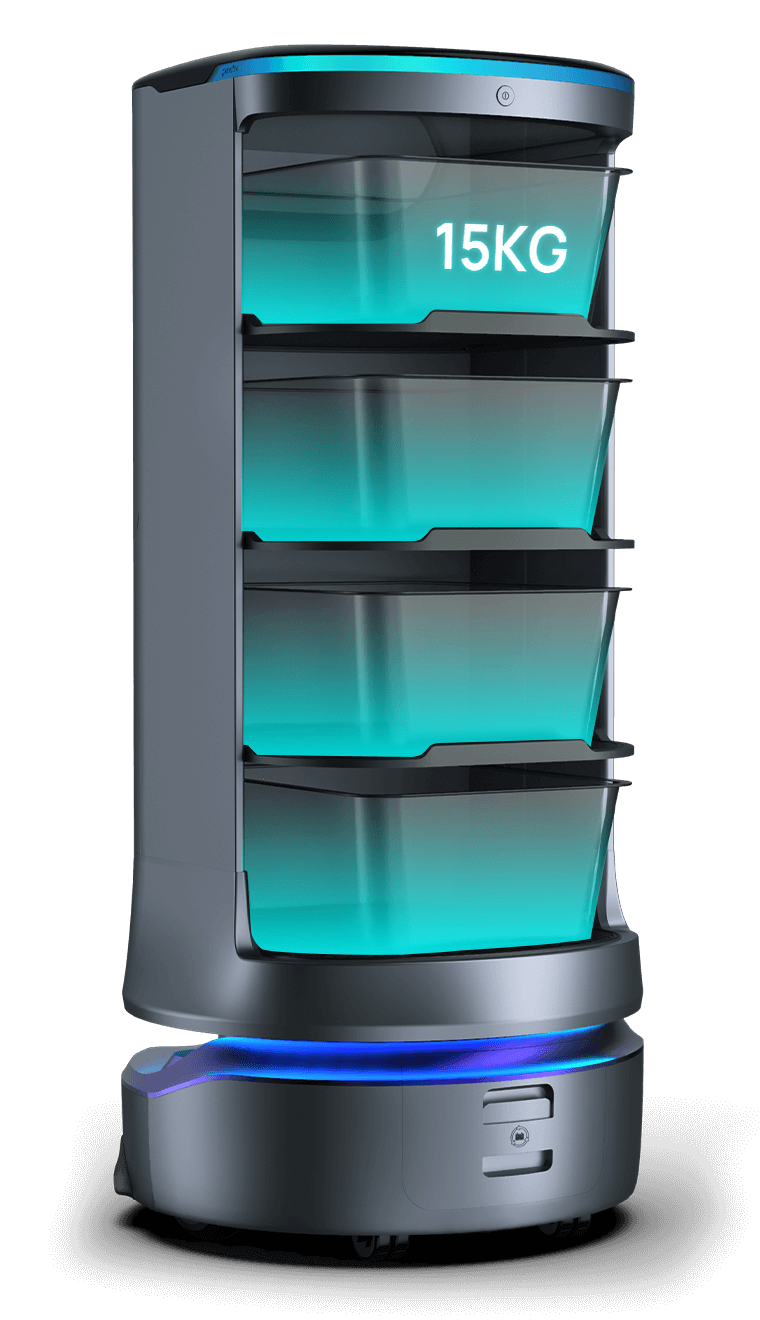 运载能力高达60Kg,120L超大容积,拥有4层运载空间[1],一次配送多桌,实现餐厅快速翻台。提高医疗物品转运效率,完成医院零接触配送,降低交叉感染风险。