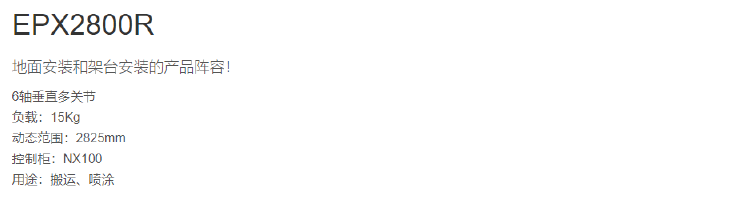 网站首页 > 产品展示 > 喷涂机器人 > 安川EPX2800R 6轴 负载15kg 工作域2825mm 喷涂 喷涂机器人 2023-05-27 机器人网 0 百度一下 2023-05-27 机器人网 0 百度一下 适合行业 喷涂机器人 发布作者 机器人网 最近更新 2023-05-27 18:18:03 概述: 文章详情 品牌名称Yaskawa 联系我们: 安川电机(中国)有限公司 ☉本站某些信息具有时效性,若有错误或已失效,需要更改请留言修改