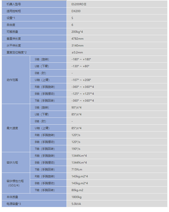 网站首页 > 产品展示 > 焊接机器人 > 安川ES200RDⅡ 6轴 负载200kg 工作域3140mm 点焊 焊接机器人 2023-05-27 机器人网 0 百度一下 2023-05-27 机器人网 0 百度一下 适合行业 焊接机器人 发布作者 机器人网 最近更新 2023-05-27 18:18:06 概述: 文章详情 品牌名称Yaskawa 轴数6 工作域3140mm 负载200kg 特点追加减速机寿命诊断功能节省设置空间的柜体式设计控制柜通过功能安全模块实现工作位置监控*1:F=置地式,W=挂壁式,C=倒挂式,S=支架式(挂壁式时,S轴的动作会有限制,请注意。)*2:JIS B 8432为基准。*3:因用途,动作模式而异。*4:无装备电缆时的值。 联系我们: 安川电机(中国)有限公司 ☉本站某些信息具有时效性,若有错误或已失效,需要更改请留言修改