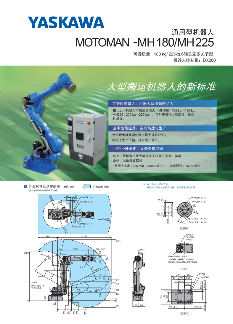 网站首页 > 产品展示 > 工业机器人 > 安川MH180 6轴 负载180kg 工作域2702mm 装配/切割/铸造/机加工 通用机器人 2023-05-27 机器人网 0 百度一下 2023-05-27 机器人网 0 百度一下 适合行业 工业机器人 发布作者 机器人网 最近更新 2023-05-27 18:18:12 概述: 文章详情 品牌名称Yaskawa 联系我们: 安川电机(中国)有限公司 ☉本站某些信息具有时效性,若有错误或已失效,需要更改请留言修改