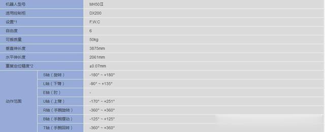 安川工业机器人MH50Ⅱ产品产品特点