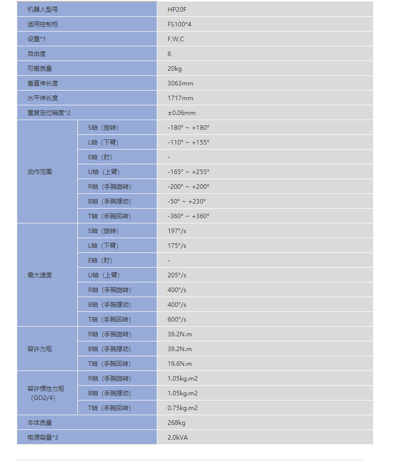 *5:超过1KG的情况因动作范围有异。请根据对应的负载使用正确的动作范围。