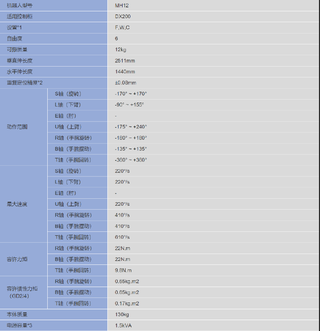 *5:超过1KG的情况因动作范围有异。请根据对应的负载使用正确的动作范围。