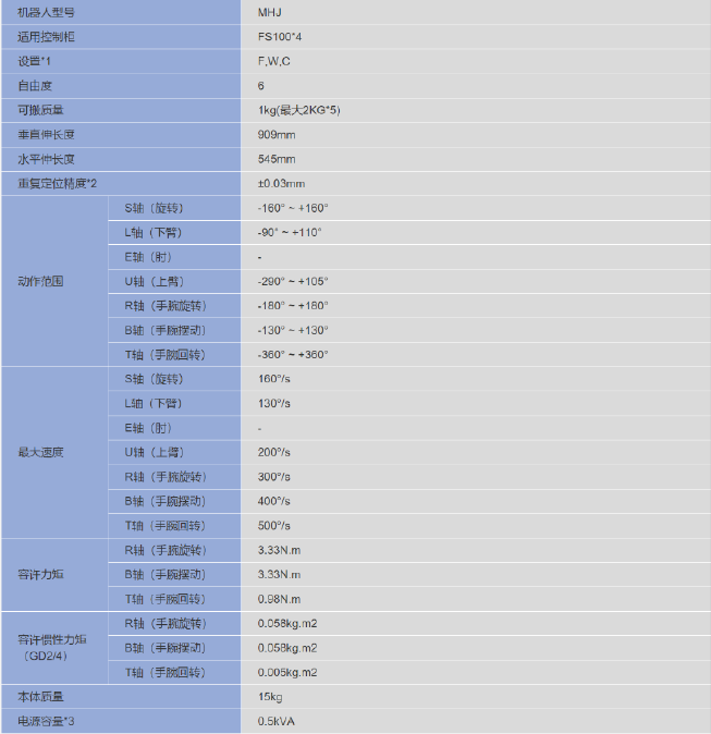 *5:超过1KG的情况因动作范围有异。请根据对应的负载使用正确的动作范围。