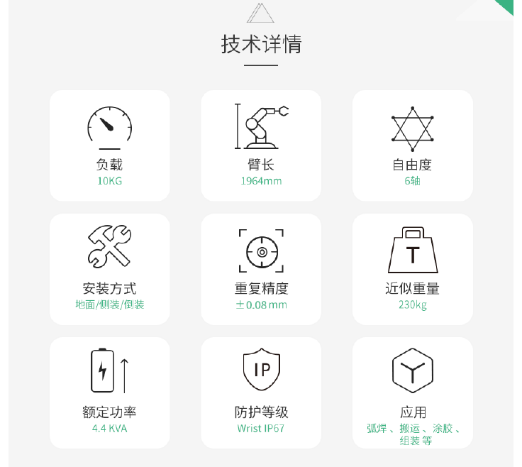 网站首页 > 产品展示 > 工业机器人 > 现代HA010L 6轴 负载10kg 工作域1964mm 弧焊/上下料/搬运 通用机器人 2023-05-27 机器人网 0 百度一下 2023-05-27 机器人网 0 百度一下 适合行业 工业机器人 发布作者 机器人网 最近更新 2023-05-27 18:18:20 概述: 文章详情 品牌名称Hyundai 联系我们: 现代机器人投资(上海)有限公司 ☉本站某些信息具有时效性,若有错误或已失效,需要更改请留言修改